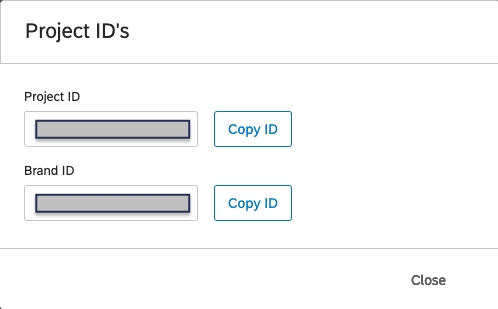 Refer to the FAQ section below for steps on how to get your Qualtrics Project ID and Brand ID.